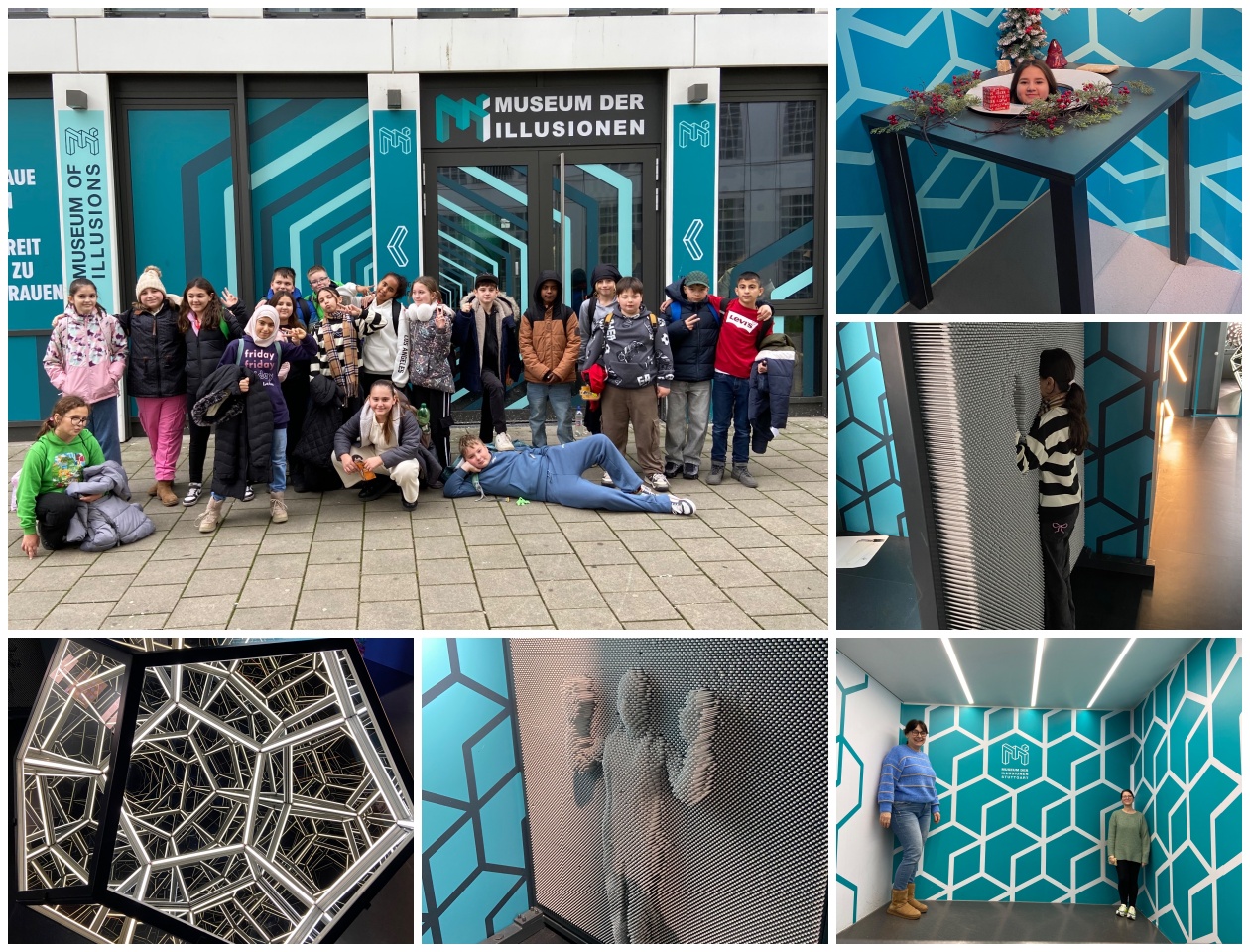 Im Museum gab es jede Menge spannende optische Täuschungen zu entdecken. An vielen Stationen konnten die Schülerinnen und Schüler selbst ausprobieren, staunen und rätseln: Was ist echt? Was sieht nur so aus? Dabei wurde schnell klar, dass sich unsere Augen manchmal ganz schön täuschen lassen.